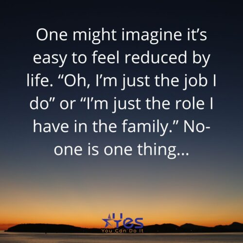 One might imagine it’s easy to feel reduced by life. “Oh, I’m just the job I do.” or “I’m just the role I have in the family.” No-one is one thing.